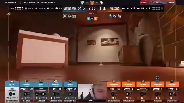 03:27:12Das Match zwischen Virtus.pro und Falcons beginnt auf Chalet. Falcons setzen auf eine passive, aber kontrollierte Defense mit Roamer wie Leakefuk, während Virtus.pro aggressiv auf bestimmte Bereiche wie Dining und Trophy abzielt. Die erste Runde goes an Falcons, die clever die Mappositionen der Verteidiger lesen und eine durchdachte Defense-Strategie anwenden. Virtus.pro reagiert in der zweiten Runde, indem sie ihre Attacke umstellen und die offensive Taktik erfolgreich umsetzen. Diese frühen Runden zeigen das taktische Kräftemessen zwischen den beiden Teams.