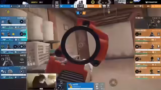 04:54:09Wolves zeigt ein Lebenszeichen mit einem Kill von Leader, aber Koi kontert mit einem Refrag von P4. Ein Guessing Game mit Nades scheitert, wodurch der Bereich unten frei wird. Nudl positioniert sich im Upper Floor, während Deadshot sich revanchiert. Koi kontrolliert die Verteidiger und zieht sich zusammen, wodurch Wolves Schwierigkeiten hat, das Highground zu nutzen. Koi setzt sich im Retake durch und gewinnt die Runde. Die schnelle und aggressive Spielweise von Koi, bei der sie den Spot schnell einnehmen, wird gelobt. Diese Taktik, bei der die Verteidigung weiträumig verteilt ist, wird als effektiv angesehen. Koi zeigt eine deutliche Leistungssteigerung im Vergleich zum Vortag, wirkt konsequenter, strukturierter und hat mehr Durchschlagskraft. Kryon kämpft sich zurück und trägt KD-technisch bei. Leon wählt Brava, während Wolves Melusi, Mute und Alibi einsetzt. Die Schwierigkeit, mit Solis und Sami Gadgets zu hacken, wird diskutiert, da dies nicht instant ist und von der Situation abhängt. Nudl engagiert sich und Mowgli fängt einen Gegner ab, während Asami den Bereich abdichtet. Koi spielt die Zeit aus und Mowgli erzielt weitere Kills, wodurch Koi die Runde gewinnt. Koi vermeidet es, in unnötige Gunfights zu geraten und überrennt die Gegner am Spot. Wolves hat Probleme, eine Überzahlsituation zu schaffen.