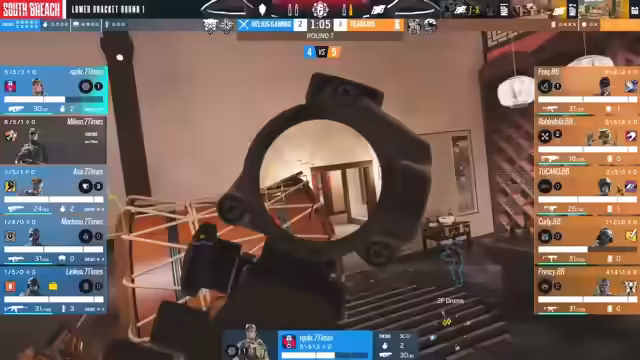 05:26:27Auf Skyscraper gerät Helios Gaming in eine schwere Situation. Das Team präsentiert sich mit einem 0-2 Rückstand in einem angeblichen Katastrophenspiel, Fehler häufen sich und die Taktik wirkt unkoordiniert. Die Attacker können kaum in das Gebäude vordringen und die Verteidiger müssen ständig Fehltritte korrigieren. Die erste Map lässt Probleme sichtbar werden, die auch in der zweiten Map fortgesetzt werden. Ein verspäteter Tactical Timeout und mangelnde Struktur in den Attacken führen dazu, dass Team 86 eine klare Ferring aufbaut und Helios Gaming kaum Chancen auf einen Ausgleich sieht.