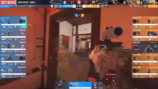 01:17:32G2 findet in der zweiten Hälfte der Map zurück ins Spiel. Die Rundeninfo und das Wissen um die eigene Map helfen ihnen, eine effektive Defensive aufzubauen. Sie ändern ihr Operator-Line-Up nur minimal, fokussieren sich aber auf starkes Breaching und nutzen Capitaos Vielseitigkeit. Durch konsequentes Frühstören, aggressives Rotieren und präzise Einzelaktionen wie von Benja und Alemau gelingt es ihnen, den Ausgleich zu erzielen und die Führung zu übernehmen.
