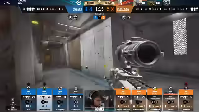 01:32:49Canadian wird zurückgedrängt, Clash kostet Zeit, Montagne wird rausgeschoben. Amby flankiert, Yoga sichert Kill. Es kommt zur 4-gegen-4-Situation. Grixar sichert Fensterposition. Surf sichert wichtige Position, Gomez gezogen. Rebellion bricht das Ganze wieder auf ein Minimum runter. Canadian im Raum. Flash gibt Info über den Plant. Grixar in Position am Fenster. Yoga fällt. Yas holt sich Grixar. Rexen. Der Plant ist da. Zwei auf zwei. Surf gegen Diaz. Head. Last Man Standing. Surf versucht sich durchzusetzen, kommt aber nicht an den Fracker ran. Diffuse wird versucht. Oxygen gibt ihm eine entspannte Schelle. Overtime. Canadian bekommt den Plant noch durch, aber Oxygen reagiert nicht gut. Die Abwehr von Canadian wird einfach so hingenommen. Surf dominiert mit der Schrotflinte vertikal. Rebellion zieht in der letzten Runde einen vernünftigen Angriff durch.