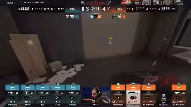 04:40:11Im weiteren Verlauf der Runden festigt Furia ihre Kontrolle über das vertikale Gameplay. Sie nutzen verschiedene Stockwerke, um die Verteidiger zu isolieren und ihre Positionen aufzudecken. CAG versucht durch gezielte Rotationen und aggressive Plays wie Double Claymores, um die Lücken in der Defensive von Furia zu schließen, jedoch kann Furia die meisten dieser Manöver kontern. Das Team zeigt sich in der Verteidigung sehr stabil und nutzt die Zeit, um sich neu zu positionieren und dem Anstieg der Angreifer standzuhalten.