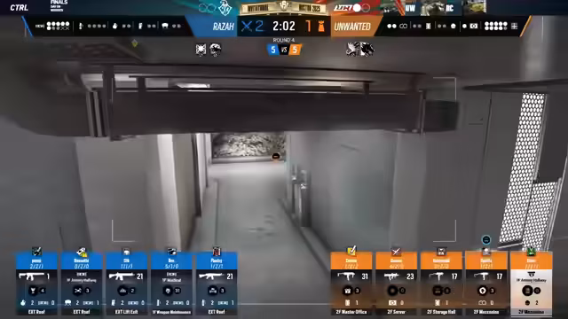 01:38:48Beide Teams sind auf einem ähnlichen Level und aus gutem Grund am Start. Ein C4 wird erwartet, aber das verteidigende Team kommt davon. Ein Crossrail wird aufgebaut und die Utility ist in der Map verteilt. Ein Spieler steht hinterm Kickertable und wird übersehen. Ein Ramboogie wird eingesetzt und eine Drohne folgt. Ein einfacher Snack wird erzielt. Das angreifende Team darf die Map mehr breit bespielen. Das verteidigende Team geht über den Monty auf den Plan. Ein Schlagabtausch findet statt und ein Verteidiger wird zum Helden. Ein Timeout wird genommen, um die Köpfe zusammenzustecken und den Fokus neu auszurichten. Die Coaches geben externen Input und es gibt Ingame-Änderungen. Es wird in die Teamkomms reingehört und etwas mit der Goumine besprochen.