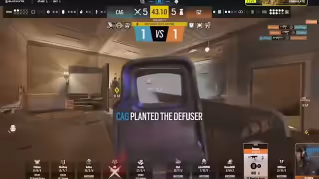 01:24:18Ein entscheidendes Missgeschick von Falcons in der letzten Runde ermöglicht es Elevate, ins Spiel zurückzukehren. In einer Überzahl-Situation verpasst Leakefuck die Chance, den Plant zu platzieren, und wird im anschließenden 1-gegen-1 eliminiert. Diesen Fehler nutzt Elevate für einen eigenen Rundengewinn und zwingt das Spiel in die Overtime. Falcons muss nun an Selbstvertrauen gewinnen und für die nachfolgende Runden neu denken.