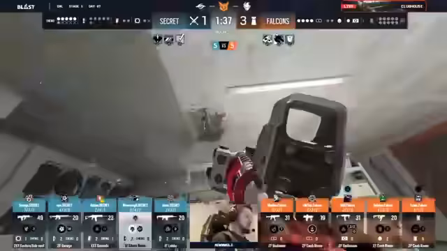 06:02:08Die Runde entwickelt sich zu einem intensiven Kampf mit mehreren Kill-Serien. Jusus spielt eine herausragende Rolle und eliminiert Gegner wie Lickfuck. Adrian und Schalke liefern ebenfalls starke Performancen. Secret zeigt eine ausgeklügelte Taktik, um einen Plant durchzuführen und die Runde zu gewinnen. Es wird 'Rainbow Six The Musical' genannt und die choreografierte Fraggen-Aktion als 'at its best' beschrieben. Das führt zu einem 3-zu-3-Status und zeigt, dass Secret trotz Unterschieden in der Performance nicht aufgeben will.
