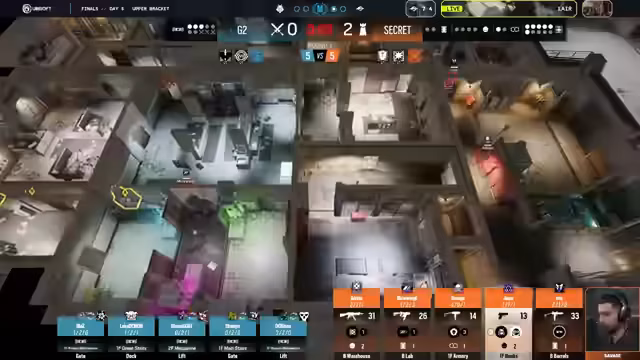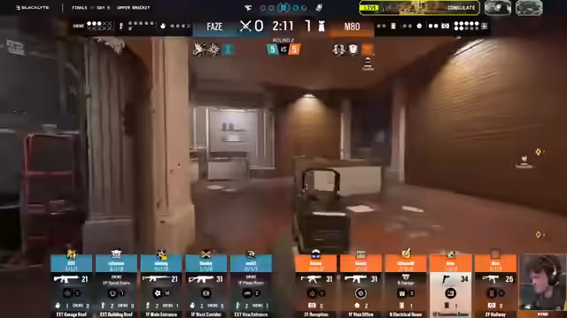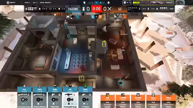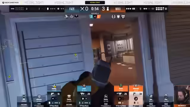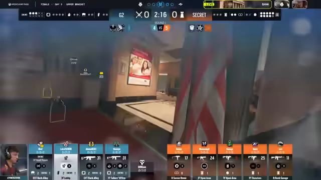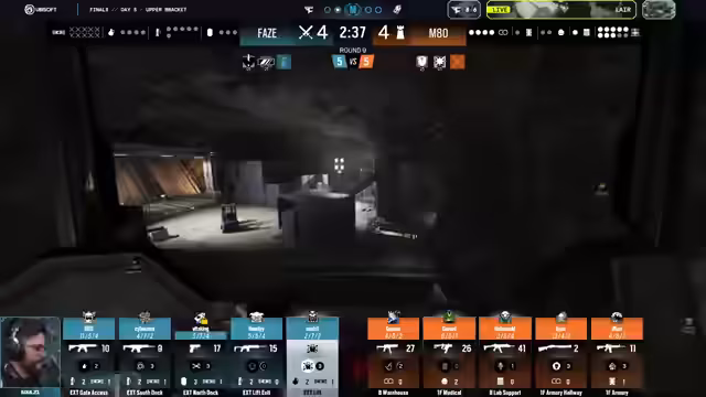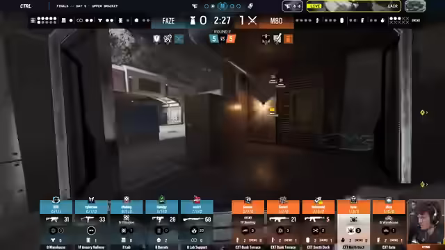 07:29:31Nach den ersten sechs Runden fand der Rollswap statt, gefolgt von der Banning-Phase, in der jedes Team zwei Operatoren der gegnerischen Seite bannen durfte. Kaid und Montagne wurden erneut gebannt, was als sehr gute Bans auf Lair angesehen wurde, da sie zwei Schild-Operatoren eliminierten. M80 zeigte wenig Interesse an Schild-Operatoren und bannte auch Tachanka. FaZe hingegen pickte Blackbeard, nachdem zwei Schild-Operatoren gebannt wurden, was auf eine Strategie hindeutet, die auf Schild-Operatoren setzt. Diffuser mit Tuberau wurde früh ausgeschaltet, was als Verlust für M80 angesehen wurde, da Tuberau mit seinem ACOG für Spawnpeaks und Soto-Canister im späteren Verlauf der Runde wertvoll ist. Es wurde jedoch bezweifelt, dass man sich hundertprozentig auf Tuberaus Utility verlässt, da das Risiko eines frühen Verlusts beim Spawnpeak immer besteht. Vertikales Gameplay von Helm in Medical und Hallway wurde beobachtet, wobei der Fußboden aufgerissen wurde, um von unten nach oben zu arbeiten, was auch in der Verteidigung genutzt wird.