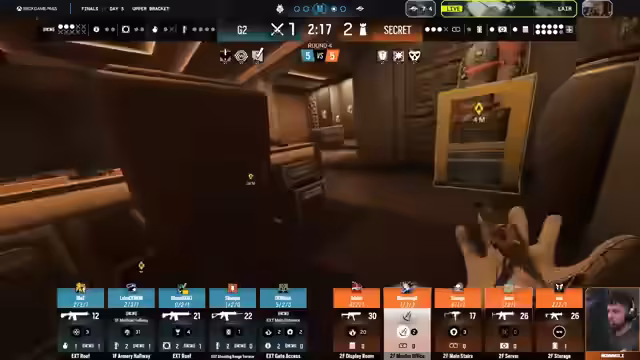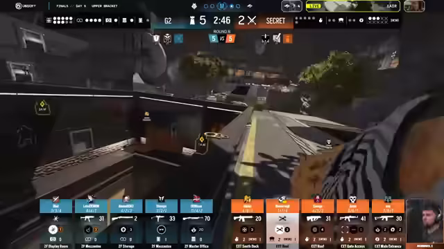 04:21:00Secret entschied sich für die Defense auf Leia mit Ausschluss von K.I.T. und Clash. G2 wählte die Attack und band Operators wie Tatsanka und Thermite aus. Für die Defensive wurde unter anderem Scorpus, Mira und Smoke eingesetzt. G2 zeigte starke Map-Kontrolle und nutzte vertikale Ansatzplätze erfolgreich. Die Map-Strategien variierten stark zwischen den Teams, wobei Secret auf eine solide Defense setzte und G2 auf aggressive Ansätze.