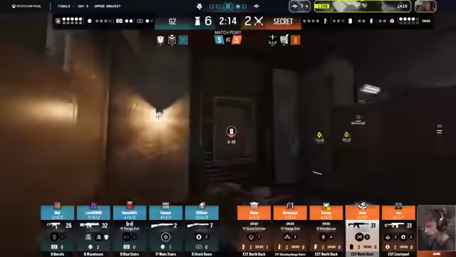 04:49:27G2 demonstriert erneut seine Stärke in der Defensive auf der Karte Leer, was eine Ausnahme darstellt, da Attack-Performances dort normalerweise schwieriger sind. Mit einem Line-Up, das Chunker, Toxibabes von Smoke und Guma1 von Azami umfasst, ist G2 auf ein schönes Zeitspiel vorbereitet. Dies ist auf Leer besonders effektiv, da die Karte groß ist, viele Räume und Chokepoints bietet und die Verteidigung durch Crossfires und Zeit zusätzlich erschwert wird. G2 nutzt Azamis Keeper Barriers und GooMinds, um die Spieler von Secret zu verzögern, was ihnen Zeit verschafft. Secret hat Schwierigkeiten, ins Gebäude zu kommen und die notwendigen Vorbereitungen zu treffen. Obwohl Secret ein solides Line-Up mit Kapitao und Deimos hat, um Doki oder Loira zu isolieren und Plant-Positionen zu untergraben, scheitern sie oft an der Umsetzung. G2 kann sich durchsetzen, und Doki spielt eine entscheidende Rolle, was zu einer 5:2-Führung für G2 führt. Die Kommentatoren betonen G2s Fähigkeit, von mehreren Seiten anzugreifen und aggressiv zu spielen, während Secret Schwierigkeiten hat, diese Angriffe abzuwehren und ihre Strategie anzupassen.
