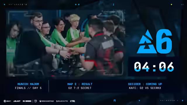 08:48:20Eine spannende Clutch-Situation entwickelt sich, in der Solotov mit der Scorpion gegen Barb kämpft. Leakefuck entledigt sich vertikal einer Bulletproof Cam, um Intel zu erhalten. Flash-Bangs werden hochgeworfen und ein schöner Klick von Solotov gegen Doki ist entscheidend. Die Situation endet mit einem Sieg für G2, die sich in die Overtime kämpfen, was auf dem engen Kopf-an-Kopf-Runden beruht.
