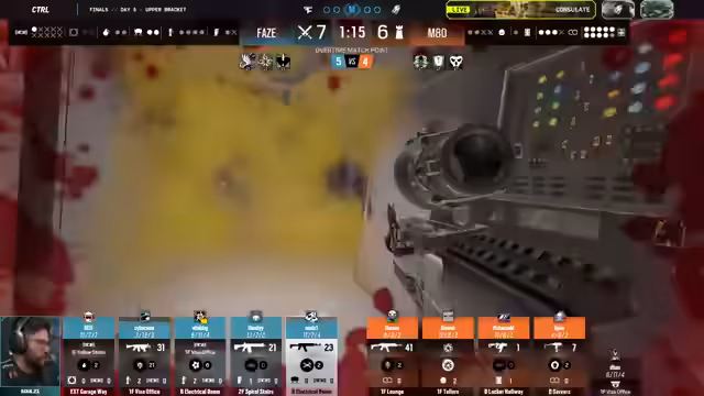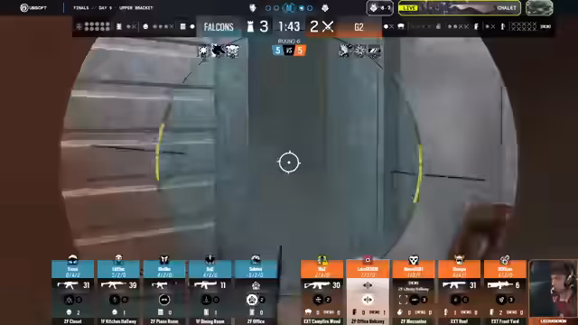 11:02:19Während des Spiels wird die Bedeutung der Vertikalität in Rainbow Six Siege betont. Besonders auf Nighthaven Labs ist der Fokus auf den oberen Stockwerken entscheidend, um Map-Kontrolle zu erlangen und Flanks zu verhindern. Die Falcons nutzen diese Map-Begebenheiten effektiv und spielen defensiv, während G2 Schwierigkeiten hat, in den Attack-Runden Fuß zu fassen. Die Falcons können ihre Führung halten und am Match für sich entscheiden.