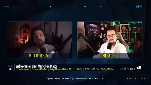 05:45:32Die Spätschicht begrüßt die Zuschauer zu den Upper Bracket Semifinals, in denen M80 gegen FaZe Clan und später Team Falcons gegen G2 antreten. Milli und Hector analysieren die bevorstehenden Matches. M80 und FaZe Clan sind beide gut durch die Swiss-Stage gekommen, wobei M80 als bestes Team abschloss. Die Kommentatoren diskutieren, ob ein früheres Best-of-1-Ergebnis zwischen den Teams wegweisend sein könnte, kommen aber zu dem Schluss, dass ein Best-of-3-Format andere Dynamiken mit sich bringt. Fabian, der Coach von M80, wird als "Schachspieler" bezeichnet, der Rainbow Six Siege auf einem anderen Niveau spielt, was die methodische Herangehensweise des Teams erklären könnte. FaZe Clan wird hingegen als aggressiver eingeschätzt, was typisch für lateinamerikanische Teams sei. Beide Teams sind im Upper Bracket und eine Niederlage würde nicht das Ausscheiden aus dem Turnier bedeuten, sondern lediglich den Abstieg ins Lower Bracket.