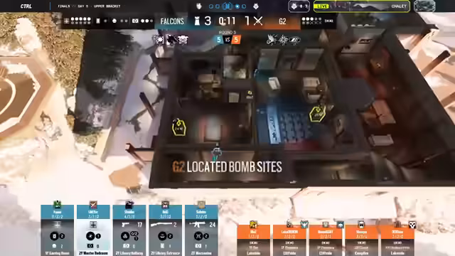 10:47:33Die Diskussion dreht sich um die Operator-Bans und deren Auswirkungen auf die Strategie, insbesondere die Hibana-Bann und die Konzentration auf Outside-Walls. G2 versucht, mit einem Ace-Pick in der Attack Druck zu machen, aber Falcons spielt passiv und effektiv, indem sie G2 daran hindern, schnell Spots einzunehmen. Falcons sichert sich weitere Runden und steht kurz vor dem Matchgewinn. Eine bemerkenswerte Valkyrie-Cam-Platzierung wird entdeckt, die für kurze Verwirrung sorgt. G2 schafft es jedoch, eine Flawless Round zu gewinnen, was ihnen Hoffnung auf ein Comeback und eine mögliche Overtime gibt, ähnlich wie auf Map 1. Trotzdem bleibt Falcons stark und sichert sich schließlich den Matchpoint. In der letzten Runde kämpft G2 verbissen, aber Falcons ist zu stark. Alemau von G2 ist der letzte Mann, kann aber die Überzahl der Falcons nicht besiegen. Falcons gewinnt das Match und schickt G2 Esports ins Lower Bracket.