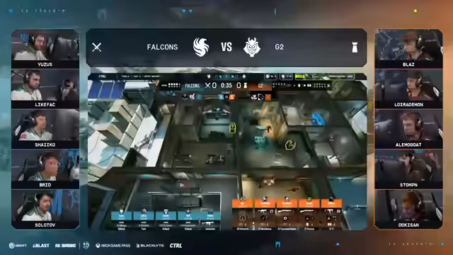 08:17:56Alemaui von G2 zeigt ein hohes Tempo in der Defensive und sichert sich früh Kontrolle in den Lockers, da Falcons diesen Bereich der Map vernachlässigt. G2 gewinnt früh an Kontrolle, da Falcons den Fokus auf den oberen Stockwerk und den vertikalen Hold legt. Eine Logic Bomb wird gezündet, um Gegner zu enttarnen. Doki positioniert sich für einen Angle gegen Schaiko, während Jusus im oberen Bereich unterwegs ist. Nach mehreren Kills auf beiden Seiten, darunter Blaz, Solotov und Predé, sowie Leakefuck durch Stompton, entsteht eine 2 gegen 2 Situation. Laura scheitert gegen Schaiko. Doki kann sich einen Kill sichern, doch Jusus zieht ihn, sodass Stompen erneut in einer 1 gegen 1 Clutch-Situation landet. Trotz wenig HP gelingt es Jusus, den Clutch zu gewinnen, was Falcons die Runde sichert. Die Runde wird als knapp, aber verdient für Falcons beschrieben, die gut mit ihrer Utility arbeiten. G2s Strategie, die Verticals zu meiden und über die Horizontale anzugreifen, wird als gut bewertet, aber Stompen muss weiterhin viel Druck bewältigen.