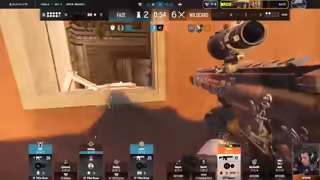 06:02:56M80 setzt seine dominante Leistung fort und erzielt einen 3:0-Vorsprung nach drei Runden auf Consulate, der Lieblingsmap von M80, die von FaZe gepickt wurde. Die Verteidigung von M80 wird als "perfektionistisch" beschrieben, mit effektiven Featholes, die den Verteidigern eine extreme Sicht ermöglichen. FaZe hingegen hat Schwierigkeiten, trotz anfänglicher Intel-Arbeit und dem Einsatz von Gadgets wie Kandellen. KDS von FaZe kann zwar Tontauben schießen, aber keinen einzigen Kopf von M80 treffen. Die Kommentatoren betonen, dass M80 sich in der Defense sehr wohl fühlt und einen klaren Gameplan hat, während FaZe der "Follow-up" nach guten Entries fehlt. Die Diskussion über Shotguns im Spiel wird angestoßen, wobei die Stärke der SRS-Schrotflinten hervorgehoben wird, im Gegensatz zu anderen, die im direkten Gunfight oft das Nachsehen haben.