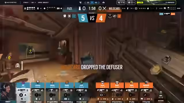 01:34:22Nach der Pause wechselt das Spiel zur Map Café. Hier zeigt sich ein anderer Spielstil als auf Chalet. Während FaZe Clan auf der ersten Map dominant war, gelingt es Wildcard, einige Runden für sich zu entscheiden. Das Team nutzt eine verbesserte Verteidigung und zeigt eine bemerkenswerte Widerstandsfähigkeit. Die Spieler koordinieren sich besser und nutzen ihre Fähigkeiten, um Druck auf die Angreifer auszuüben.