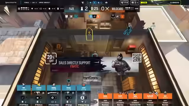01:34:38Die zweite Map, Café, ist der Pick von FaZe Clan, nachdem Wildcard ihre eigene Map Chalet mit 7:2 verloren hat – eine der schnellsten Runden in der Geschichte von Rainbow Six Siege. Wildcard reagiert mit strategischen Bans: Asami, Mira, Montagne und Gridlock werden ausgeschlossen. Besonders der Asami-Ban ist valide, da dieser Operator auf Café im Piano-Bereich sehr effektiv sein kann. Gridlock wird gebannt, um mehr Bewegungsfreiheit zu ermöglichen, obwohl dies bedeutet, auf die Flankenschutz- und Flächenkontrollmöglichkeiten zu verzichten, die Gridlock bietet. Die Kommentatoren spekulieren über die Auswirkungen dieser Bans auf das Spieltempo und die Möglichkeiten für Runouts, die auf Café häufig vorkommen. Das Spiel verspricht, spannend zu werden, da Wildcard versuchen muss, auf FaZe Clans Pick zu bestehen und eine schnelle Niederlage wie auf Chalet zu vermeiden.