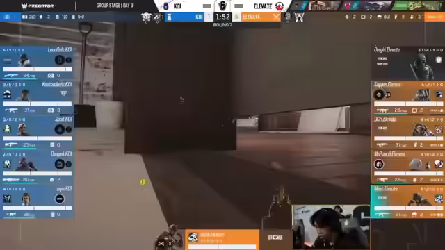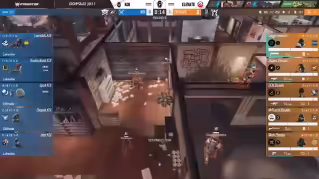 02:25:03Elevate bleibt aggressiv im Top Floor, aber Koi findet einen Weg, dies zu kontern. Spoilt erzielt einen wichtigen Double-Kill, der das Blatt wendet und Koi in eine vorteilhafte Position bringt. Durch gute Drohnenarbeit und das Ausnutzen von Positionen kann Koi Druck auf Elevate ausüben. Trotz eines Flashbangs, der nicht optimal genutzt wird, kann Koi die Runde für sich entscheiden und auf 2:0 erhöhen. Elevate zeigt jedoch weiterhin eine starke Teamleistung und nutzt die Map gut aus, was Koi Schwierigkeiten bereitet. Koi muss einen Weg finden, sich besser auf Chalet zu behaupten und die Aggressivität von Elevate zu kontrollieren. Elevate kombiniert geschickt die Fähigkeiten von Asami und Onigiri, was es Koi schwer macht, in die Verteidigung einzudringen. Trotzdem gelingt es Koi, durch schnelle Zugriffe und präzise Aktionen die Oberhand zu gewinnen und die Runde für sich zu entscheiden.
