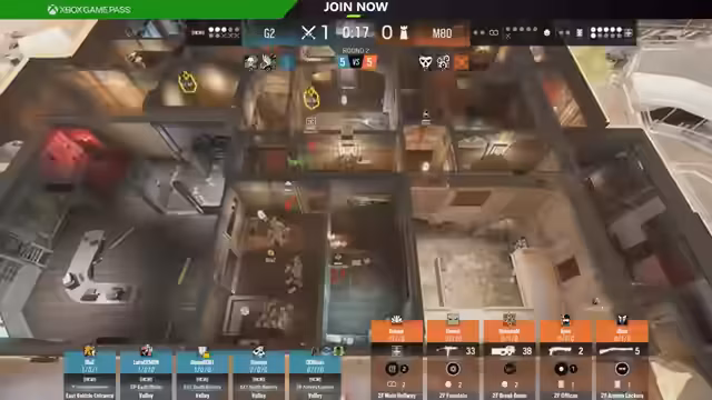 05:23:21Das Spiel findet auf der Map Border statt mit einem Spielstand von 3 zu 2 für MD. M80 hat die Runde gewonnen und nur noch eine Chance, das Spiel zu drehen. Man analysiert das Spielverhalten, wobei MD eine Attack-Silence-Ansage hat. Es kommt zu einem Intermezzo mit einer aggressiven Attack, während die Defensive abwartet. Diffuser stößt hier in den Konflikt und einen wichtigen Refrag.