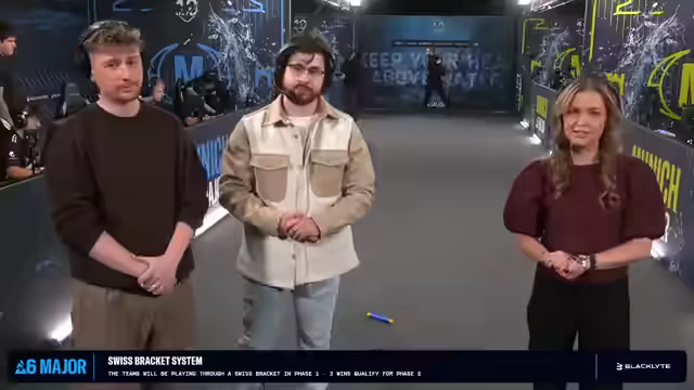 06:36:06Der Spieltag des Munich Major beginnt mit Begrüßungen und einer Erklärung des Swiss-Formats. Nach den ersten vier Spielen wird das Feld neu sortiert: Gewinner spielen gegen Gewinner, Verlierer gegen Verlierer. Dies führt zu einer neuen Konstellation von Matches auf zwei parallelen Streams. Die Kommentatoren präsentieren den vollen Spielplan, der sowohl Spiele zwischen Gewinnerteams (z.B. D-Plus Kia gegen Falcons) als auch zwischen Verliererteams (z.B. G2 gegen Cyclops) umfasst. Das Risiko einer Elimination bei drei Niederlagen wird hervorgehoben.