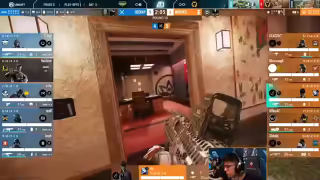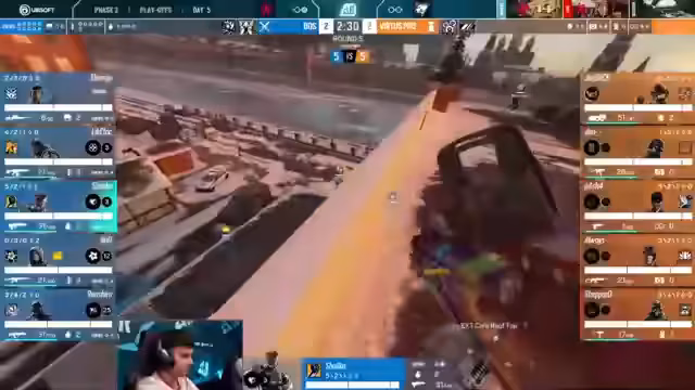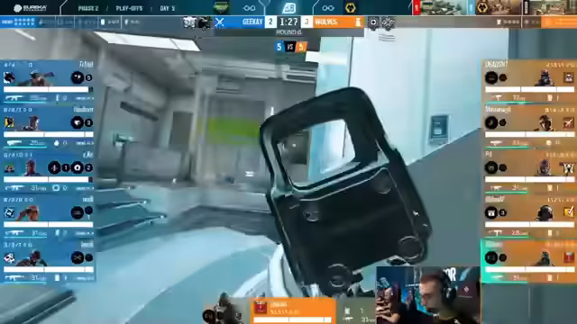 09:36:29Nachdem Space Station mit 5 zu 2 in Führung geht, nutzt Bleed einen strategischen Timeout. Der Kommentator stellt fest, dass der Zeitpunkt sinnvoll war, da noch alles möglich ist. Gleichzeitig kommt es zu einer verbalen Eskalation zwischen den Teams. Spieler von Bleed reagieren provokant auf die Niederlage, was von Kommentatoren als unterhaltsames 'Nebenevent' beschrieben wird, das den taktischen Charakter des Spiels parodiert, aber gleichzeitig den Geist von Rainbow Six zeigt.