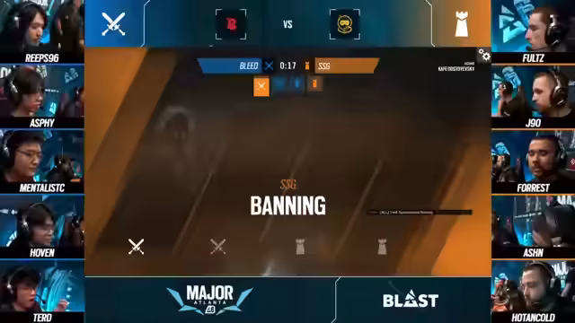 09:08:08Vor dem Start der Consulate-Map findet die Bannphase statt. SSG wählt Ying aus, während Bleed den Solis-Bann wiederholt und den Montagne als strategischen Bann einsetzt, vermutlich aufgrund von Erkenntnissen aus vorherigen Spielen gegen Cyclops. Das Analyse-Team von SSG entscheidet sich für ein defensives Line-up mit Blitz, Sense, Amaru, Lion und Hibana. Der Hibana-Operator wird in diesem Kontext als etwas unpassend empfunden, während die Wahl des Blitz als treuer Konstante gewertet wird.