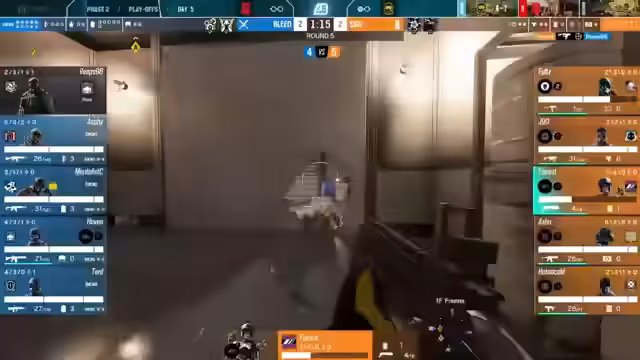 08:45:31In der finalen Runde steht Bleed vor dem Sieg. Space Station unternimmt noch einen letzten Versuch mit dem Operator Blitz, um eine Tür aufzubrechen, doch der Plan geht nicht auf und es fallen mehrere Spieler. Trotz guter einzelner Aktionen wie der von Uven gelingt es Space Station nicht, die Runde für sich zu entscheiden. Die Kommentatoren fassen das Match zusammen und bewerten es als gelungenes Spiel von Bleed, das den Playoff-Sieg verdientigend für sich entscheidet.