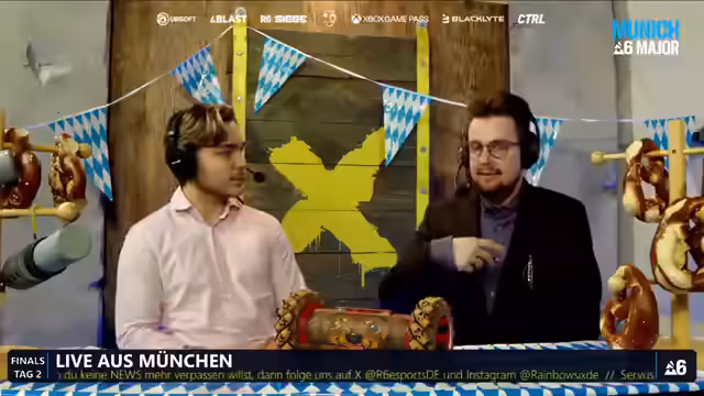 08:45:41Neben dem sportlichen Geschehen wird auch die Atmosphäre im Studio beleuchtet. Die Moderatoren zeigen sich bei guter Laune, interagieren humorvoll mit dem Publikum und führen lockere Gespräche. Dabei gibt es kleine Ausrutscher und persönliche Anekdoten, wie die Verwirrung um die Map-Auswahl oder Diskussionen um Begriffe wie 'Schnick-Schnack-Schnuck'. Es wird deutlich, dass der Stream nicht nur das Gameplay, sondern auch die Energie und den Entertainment-Aspekt im Vordergrund steht, was zu einem rundenhaften Erlebnis für die Zuschauer führt.