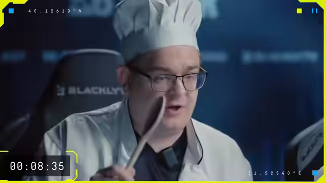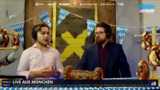 08:48:58Ein wiederkehrendes Element ist die humorvolle Betrachtung der Live-Produktion. Es wird über die teils absurden Situationen gesprochen, wie das mitgebrachte 'Essensproviant' der Moderatoren oder die ungewöhnlichen Gegenstände in der Event-Halle. Das Kommentatorenteam zeichnet sich durch seine lockere, aber fachkundige Art aus. Sie analysieren das Gameplay auf hohem Niveau, unterbrechen sich aber ständig mit persönlichen Einwürfen und Anekdoten, was eine besondere Dynamik und eine hohe Identifikation mit dem Zuschauer schafft.