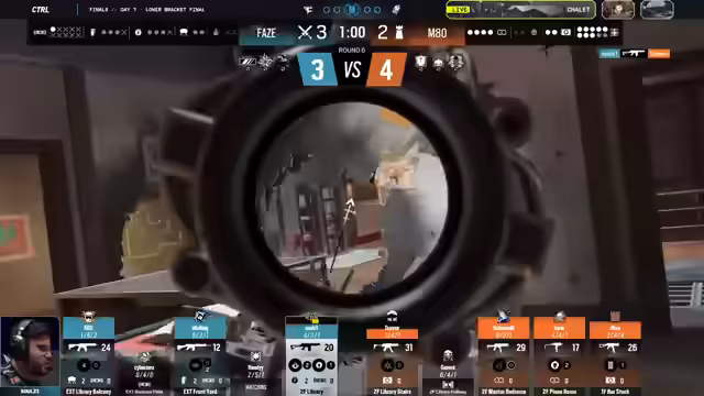 08:16:50Auf der Map Chalet zeigt sich FaZe, insbesondere in der Defensive, als überlegen. Sie kontrollieren alle Eingänge und lassen keinen Angreifer ungehindert passieren, was zu einer dominanten Defense-Führung führt. Der Konterangriff von M80 scheitert, da FaZe koordiniert agiert und durch gezielte Kills und strategische Positionierung die Runden für sich entscheidet. Dies führt dazu, dass M80 auf Map 1 nicht mehr herankommt und FaZe mit einem klaren 1-0 Vorsprung in die zweite Map Skyscraper geht.