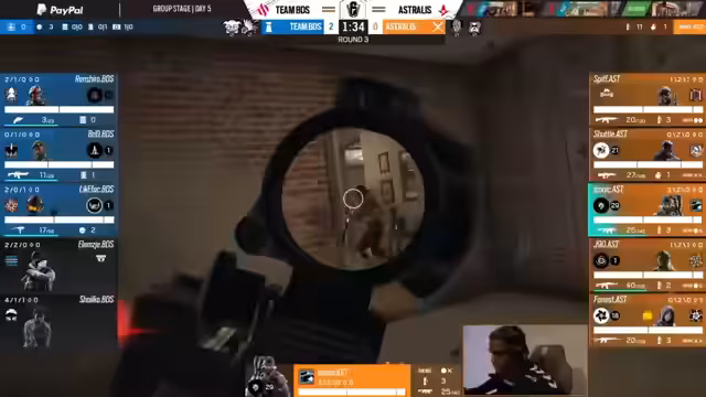 07:59:07Astralis versucht durch Druck oben auf der Map das Spiel zu kontrollieren, scheitert aber an der Verteidigung von BDS. Montage nutzt das Hardbreach-Gadget effektiv, um wichtige Spots zu besetzen. Ranchiro in perfekter Position verhindert den Angriff. Die Rotationen und Timings spielen eine entscheidende Rolle im Map-Controlling.