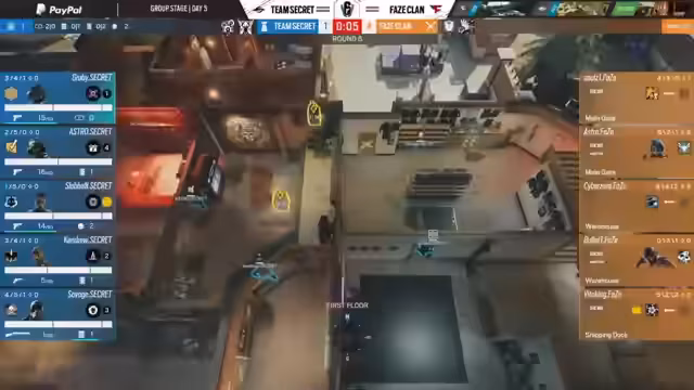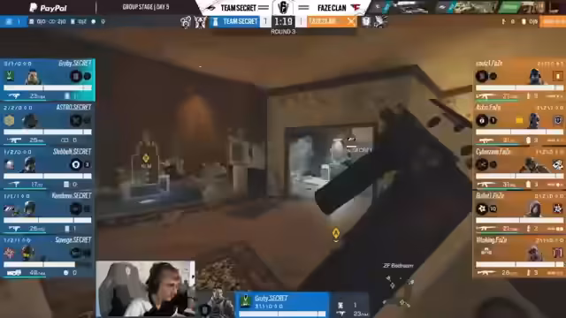 11:04:45Nach der Pause beginnt das zweite Spiel auf der Map Border zwischen FaceClan und Team Secret. FaceClan geht nach dem klaren Sieg auf Clubhouse voller Selbstvertrauen in die zweite Map. Team Secret hingegen wirkt resigniert und wählt No-Bun als Operator. Die erste Hälfte des Spiels auf Border ist von viel Ungewissheit und Zufälligkeit geprägt, was Secret in einigen Runden zu einem Vorteil verhilft. Allerdings gibt es weiterhin Koordinationsprobleme auf Seiten von Secret.