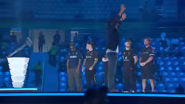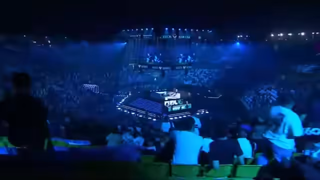 01:15:17Die Halle wird für den Start der Finalmatches eingestimmt. Ein inszenierter Lore-Teaser wird ausgestrahlt, der den fiktiven Narrative-Hintergrund des Spiels aufgreift. In dem Teaser geht es um die Jagd auf den Anführer der Terroristenorganisation 'Demos' in Brasilien. Der Teaser schafft eine dramatische Spannung und leitet offiziell die Missionen der finalen Wettkämpfe ein, bei denen die siegreichen Teams die Welt retten sollen.