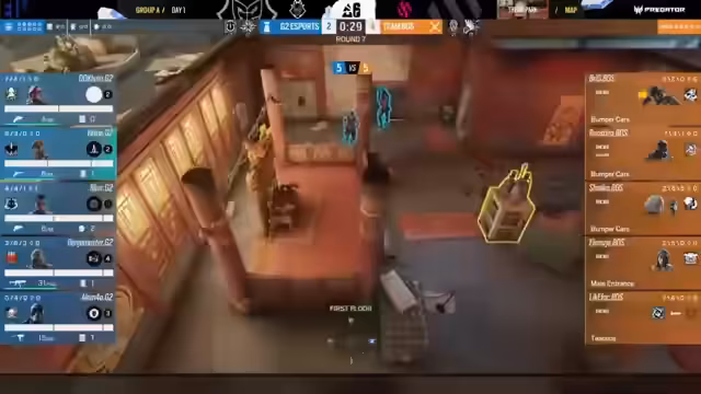 03:35:56Die ersten Runden des laufenden Matches auf Theme Park werden analysiert. Ein Hauptproblem für G2 ist die Zeit, die sie für ihre Angriffe benötigen, was sich schon in der ersten Runde als kritisch erweist. Ein geplanter Angriff scheitert, weil Elemente zu viel Zeit mit Ella im oberen Stockwerk verliert, sodass G2 keinen Aufbau mehr vollenden kann. BDS nutzt dies aus, erarbeitet sich einen Vorteil und sichert sich die Runden durch Opening-Frags und guten Vertical Play. G2 kämpft mit ineffektiven Angriffen und Zeitmangel.