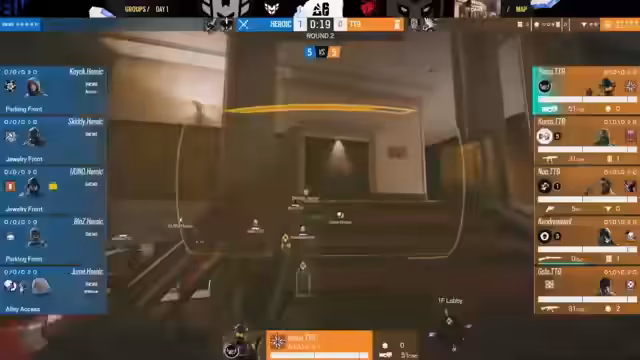 01:10:58TT9 verteidigte die erste Runde, indem sie viel Zeit über den Top-Down-Clear zogen und die Angreifer in den oberen Etagen aufhielten. Die Kommunikation war hier präsent, und es wurden Intel-Drohnen eingesetzt. Jedoch geschah nach dem Clear ein strategischer Fehler: Sie zogen sich nicht rechtzeitig vom Mainstairs zurück, um den wichtigen Basement-Holdpoint zu schützen. Diese Verzettelung und die fehlende Rückzugskoordination führten dazu, dass Heroic in eine numerische Überzahl kam und die Runde klar für sich entscheiden konnte.
