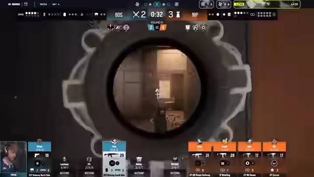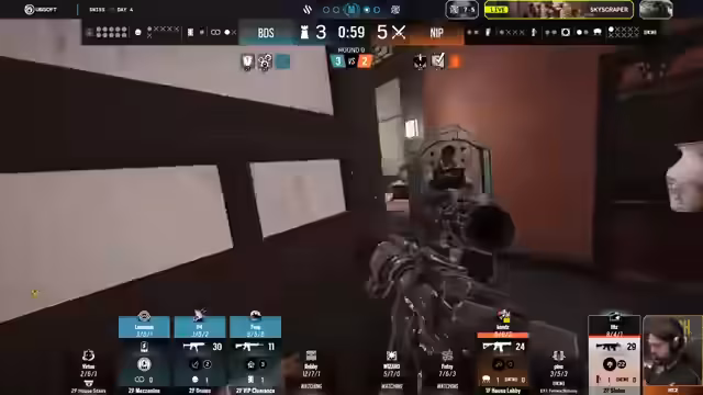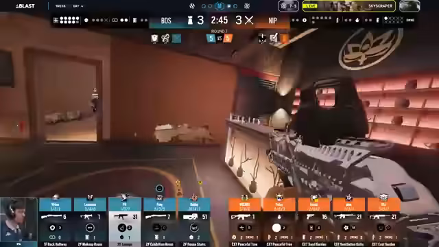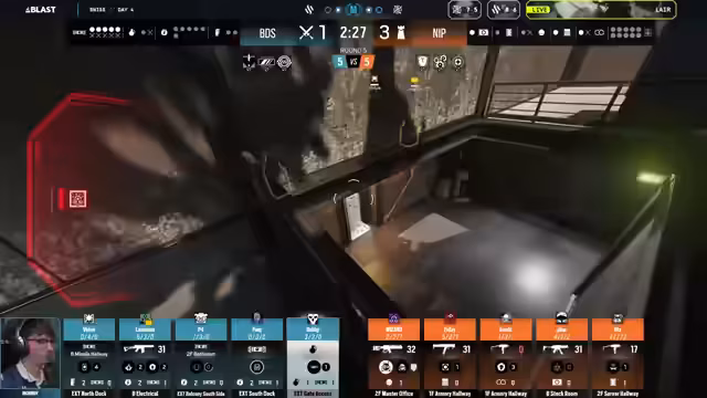 05:10:54Die Runde der BDS wird als besser als die vorherigen eingestuft, weil sie weniger eindimensional war. Sie versuchten, mit Gridlock und Thatcher vertikal vorzugehen, um den Gegner zu ködern, was aber aufgrund von zu vielen Verlusten nicht vollends funktionierte. N.I.P. passte ihre Operator-Auswahl an, indem sie Kaid und Bandit bannen und stattdessen eine Clash einsetzten, was ihre strategische Flexibilität zeigte.