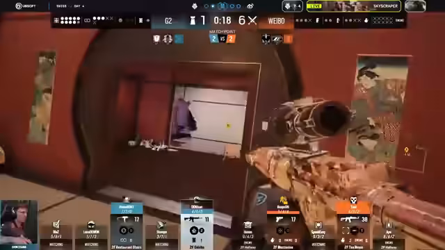 07:38:00Waibo baut seine Führung auf Skyscraper auf ein komfortables 5:1 aus. Die Kommentatoren heben hervor, dass Waibo 'G2 klein hält' und durch starkes Teamplay Siege einfährt. G2s Spielstil wird als 'unkonzentriert' und 'fehlerbehaftet' kritisiert. Zusätzlich wird auf das Thema Map-Balancing eingegangen, bei dem erklärt wird, dass es in kompetitiven Shootern normal ist, dass Maps entweder attack- oder defendersseitig sind.
