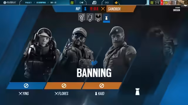 07:39:28Nach der Pause beginnt die zweite Map auf Oregon. Die Kommentatoren erklären die Map-Pick-Regel: Da NIP auf der vorherigen Map Chalet gewählt hat, darf Sandbox die Seite bestimmen. Interessanterweise wählt Sandbox die Angreifer-Seite, obwohl dies bei dieser Map nicht als ideal gilt. NIP entscheidet sich stattdessen für die Verteidigung, eine Seite mit höherer Präferenz.