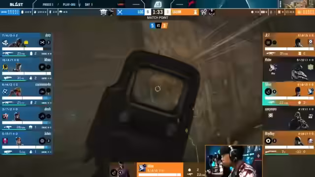 01:36:20Der Stream startet das nächste Spiel zwischen Lost und Talon auf der Map Oregon. Lost beginnt in der Defense. Kommentatoren sprechen ihre Vorlieben für die Map aus und heben die schnelle Spielweise der Mena-Region hervor, um dies mit der vorsichtigeren Herangehensweise von Talon zu vergleichen. Das erste Half-Time-Resultis zeigt eine starke Offensive von Talon, die nach anfänglichen Schwierigkeiten die Kontrolle über Bereiche wie Freezer gewinnen konnte. Die Taktik der Nutzung von Operators wie Twitch wird als besonders effektiv bewertet.