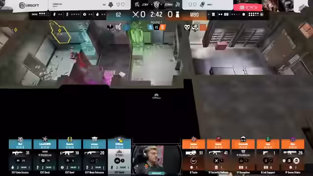 08:09:14Wechselt zur dritten Map, die auf dieser spielerisch defensiv anspruchsvoller ist. IQ wird als Operator gewählt, um Valkyrie-Camps aufzudecken. Das Top-Floor gilt als extrem schwierig zu verteidigen. Es wird festgestellt, dass vertikales Gameplay hier eine Schlüsselrolle spielt, da es die verteilten Verteidiger besser koordiniert und den Druck auf die Attacker erhöht.