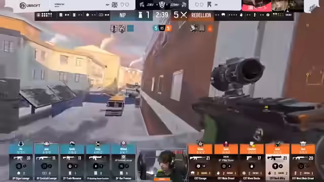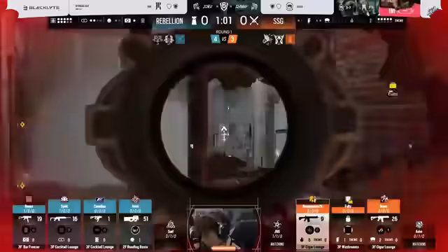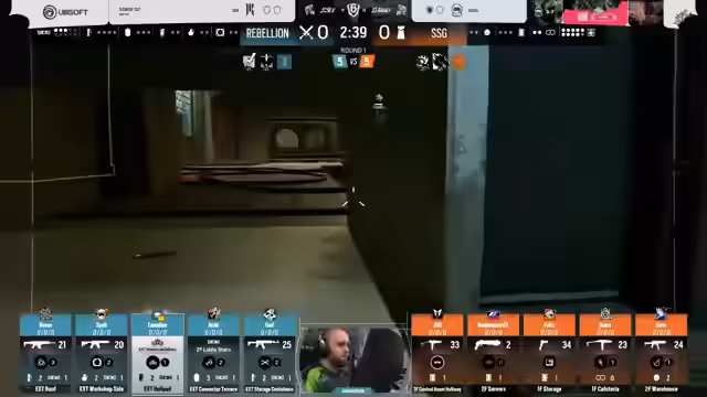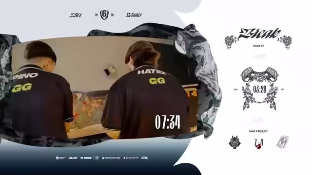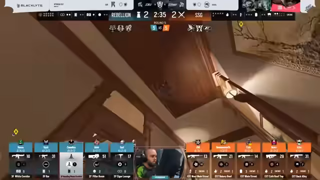 07:28:55Das Match ist von intensiven, taktischen Duellen geprägt. SSG setzt auf aggressives Kontrollieren der Map und hält Shopify Rebellion den Raum vor, was deren Spielstil behindert. Shopify Rebellions Defense ist eine Herausforderung, da sie mit nur einem Hardbreacher-Operator (Hibana) auskommen müssen, was den Einstieg in Gebäude erschwert. Das Ergebnis des Spiels nach der ersten Map ist 5-5.