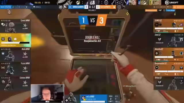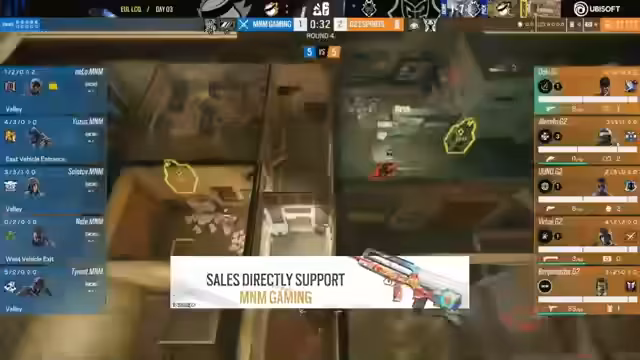 01:46:45Doki wird von Nave rausgenommen, was die Runde spannend macht. Der Diffuser ist auf Verteidigerseite, was ein großes Problem darstellt. Nave setzt sich durch, aber die Zeit wird knapp. G2 reagiert perfekt und beweist, dass sie ihre Probleme erkannt haben. Sie agieren passiver und nutzen die Vertikale perfekt aus. G2 hindert M&M Gaming daran, easy reinzukommen. G2 beweist, dass sie ihren Gegner gut gelesen haben und ihre eigenen Schwächen kennen. M&M Gaming will den dritten Punkt holen, um in der ersten Hälfte nicht abgehängt zu werden. Beide Teams treffen sehr schöne Entscheidungen und M&M wächst mit ihren Aufgaben. M&M Gaming will mit einer sehr guten Informationsverarbeitung den Ausgleich schaffen. Man merkt, dass kein Step gemacht werden soll, ohne dass jemand weiß, was auf dem Spielfeld abgeht. Ein Uno ist in Abseits des Ganzen positioniert, Wand jetzt geöffnet. Kiba geöffnet, zusätzlicher Linescan, schönes Double. Bencher bleibt mutig stehen und Solotov erzielt einen Kill auf Virtue. M&M Gaming ist in Überzahl, aber Alemau erzielt einen Frack auf Tyrant. Zolotov bekommt den letzten Kill und das 3-3 ist perfekt. Border wird Even beendet, was für Spannung sorgt.