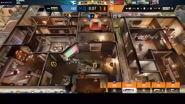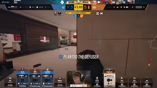 01:25:09SSG beginnt die Offensive mit einem Fokus auf Map-Kontrolle durch diverse Operatoren. Benja mit dem Sledge und der Blitz kommen als wichtige Faktoren hinzu, um Druck aufzubauen. Cyber schafft ein Opening-Frag, während das Team nachfolgend in den Engage Point geht. Die Offensive wird durch gezielte Aktionen an verschiedenen Entry-Points intensiviert. Das Gameplay zeigt die Wichtigkeit von strategischem Positionsspiel und der konsequenten Nutzung der verschiedenen Stärken der Operatoren.