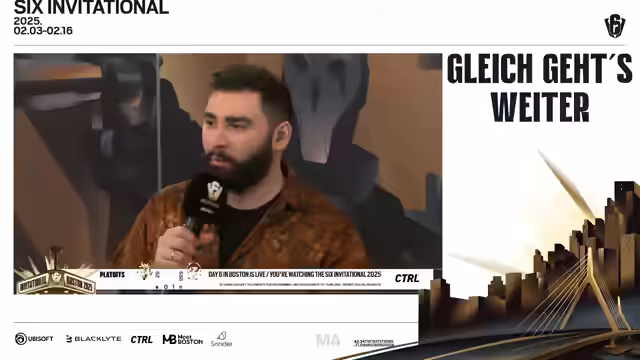 06:39:15Die SIX INVITATIONAL 2025 beginnt in Boston traditionell im Februar bei sonnigem Sommerwetter. Die EU-C ist zurück und bereitet sich auf die nächsten wichtigen Spiele vor. Nach einem brisanten Match erwartet die Zuschauer ein Koryphäen-Game zwischen G2 und Silber. G2 ist bisher als einziges Team flawless durch das Turnier gegangen und gilt als absoluter Top-Favorit.