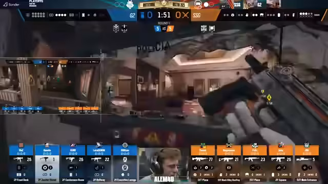 07:13:05SSG gewinnt die erste Map auf Chalet mit 7:2 und ist damit das erste Team, das G2 in diesem Turnier besiegt. Forrest von SSG glänzt mit einem 1v3 Clutch. Die Aggressivität und das Vertrauen von SSG sind beeindruckend. G2 wirkt geschockt und kann keine Antwort finden. SSG zeigt einen klaren Gameplan und setzt diesen konsequent um.