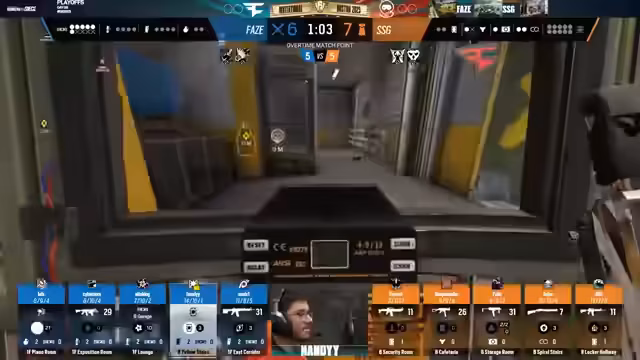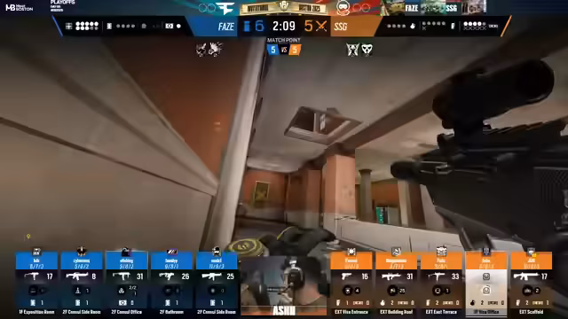 02:31:09Die Map wechselt zu Bank, wo SSG auf seine Stammmap zurückkehrt. Die Kommentatoren heben die Wichtigkeit von Defense-Runden für SSG hervor, da dies ihre beste Map ist. SSG zeigt zu Beginn unsicheres Gameplay und lässt wieder Lücken offen, während FaZe konsequent agiert. Beide Teams kämpfen nun mit hohem Einsatz um jede Runde, wobei besonders die Überlebensfähigkeit und die Ressourcenmanagement eine entscheidende Rolle spielen. Es bleibt völlig offen, wer die Map gewinnen wird und damit ins Finale einzieht.