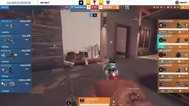 02:07:25Auf Chalet wird der Fokus auf das Informations- und Utility-Gameplay gelegt. Project Nemesis versucht, mit Schilden und Breaching Charges Wände aufzubrechen, während die Blue Jays mit aggresivem Movement und Kombinationen aus Flashes und Schrotflinten agieren. Ein gezielter Angriff auf die Garage zeigt die Risiken und Chancen des angreifenden Spiels auf dieser Map.