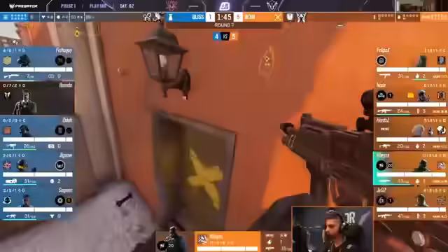 07:11:04Die Entscheidung auf Villa fällt in letzter Sekunde. Donuts Veril in der Defense, während Bliss angreift. Donuts Veril setzt auf ein defensives Line-Up mit Mira, Mute, Smoke, Kapkan und Mozzie. Bliss greift direkt an und droht, den Diffuser zu platzieren. Jigsaw arbeitet mit Nates. Aokaru eliminiert einen Spieler durch den Boden. Kawa legt nach. Beide Mira-Spiegel sind offen, was ungünstig ist. Sargion will vorgehen, wird aber durch C4 gestoppt. Bliss gewinnt, weil die Zeit ausläuft. Donuts Veril nimmt die Niederlage gelassen hin. Ranto stirbt aufgrund von Zeitproblemen in der Kapkan-Trap. Ein Problem für Veril ist, dass sie keine Alternative finden, wenn ihr Plan nicht funktioniert. Bliss gewinnt die Map und erzwingt eine dritte Map auf Border. Border wird als wilde Map zwischen den beiden Teams erwartet. Das Spiel ist geprägt von Spannung und knappen Entscheidungen.