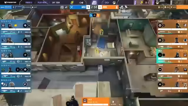 06:05:15Das Spiel startet auf Skyscraper, wobei M&M in der ersten Runde die Oberhand behält. Nave agiert mit Goyo aggressiv, während Spoilt mit Ash einen wichtigen Raum einnimmt. Solotov erzielt einen frühen Kill, und M&M baut eine 4-gegen-2-Überzahlsituation auf. Trotz Schwierigkeiten in der Vergangenheit spielt M&M die Runde clever zu Ende und gewinnt sie. M80s Aufbau wird als zu einfach kritisiert, und der fehlende Support für Ace wird bemängelt. In der zweiten Runde baut sich Métis langsam auf, während M&M weiterhin Druck ausübt. Tyrant erzielt einen C4-Kill, und Iconic verliert ein Gefecht. M&M gewinnt auch die zweite Runde, was zu einem frühen taktischen Timeout von M80 führt. Der Timeout wird als potenziell zu früh angesehen, aber es wird spekuliert, dass interne Kommunikationsprobleme der Grund sein könnten. M&M verteidigt Tea und Karaoke erfolgreich, wobei Solotov eine herausragende Leistung zeigt. Iconic erzielt einen Kill, aber Joseph kontert. M&M gewinnt die dritte Runde und baut ihre Führung aus. Nach einem Rehost wird die Ernsthaftigkeit in den Gesichtern der Spieler bemerkt, und Iconic versucht, das Team zu motivieren. Es wird betont, dass diese Runde entscheidend ist, da ein Sieg für M&M den Gegner brechen könnte. M&M spielt strukturiert und diszipliniert, was ihnen einen Vorteil verschafft.