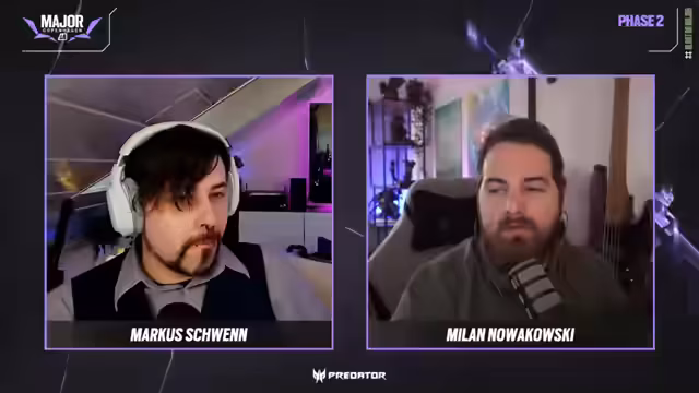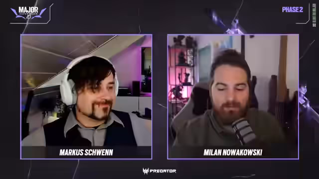 08:27:32Die Kommentatoren bemerken die ungewöhnlich hohe Anzahl an Time-Ups im Match und betonen die kontinuierlichen Anpassungen der Defense-Runden. Sie heben hervor, dass M&M durch Roaming und das Nehmen von Fläche mehr Zeit gewinnt, was die Gegner unvorsichtig macht. Es wird spekuliert, dass M80 an seine Leistungsgrenzen stößt, was zu Fehlern führt. Die Möglichkeit der Müdigkeit bei Matey wird angesprochen. Die Kommentatoren vergleichen die aktuelle Situation mit einem früheren Spiel auf Skyscraper, bei dem sich das Blatt in der Overtime wendete. Sie analysieren Solotovs Jacuzzi-Position und die Bedeutung der Valkyrie-Cam. Diaz' potenzielle C4-Denial-Strategie wird diskutiert, ebenso wie die verbleibende Zeit und die Notwendigkeit, Roaming auszuschließen. Die Kommentatoren loben die anstrengende, aber fesselnde Natur des Spiels und die Fähigkeit der Teams, auf die Strategien des anderen zu reagieren. Sie betonen, dass es mehr als nur Schusswechsel sind und die Teams Anpassungen vornehmen müssen, um erfolgreich zu sein. Ein technischer Rehost wird erwähnt, der die Spieler aus dem Fokus reißt und das Spiel verlängert. Die lange Spieldauer seit 17:30 Uhr wird als harter Marathonlauf bezeichnet.
