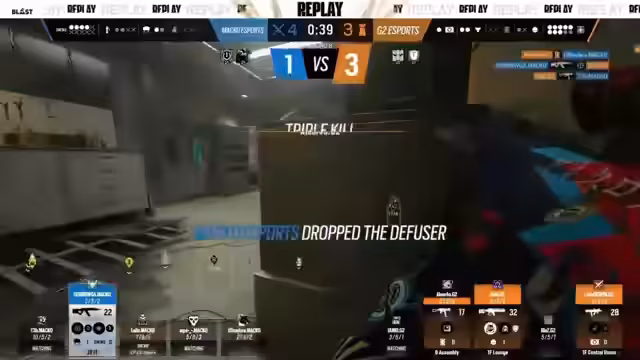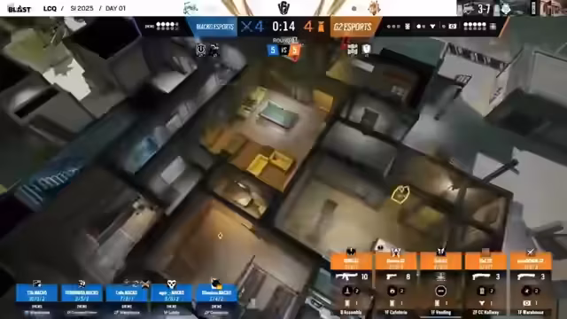 03:47:37G2 beginnt die zweite Map mit einem aggressiven und vielversprechenden Ansatz. Sie nutzen mehrere Operator, um Druck aus verschiedenen Richtungen aufzubauen, wie den Blackbeard an den Blue Stairs und den Maverick für schnelle Breachs. Ein früher Opening-Frag von Aki gibt ihnen entscheidende Vorteile. Trotz eines leichten Fehlers, bei dem ein Spieler stehend exponiert wurde, zeigt G2 eine klare taktische Linie, um die Kontrolle über wichtige Map-Bereiche wie Connector zu gewinnen.